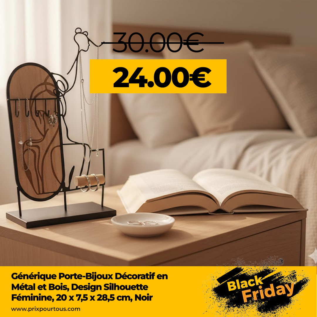 DIMENSIONS: Élégant porte-bijoux mesurant 20 cm de largeur, 7,5 cm de profondeur et 28,5 cm de hauteur DESIGN ARTISTIQUE: Silhouette féminine en métal noir avec panneau en bois naturel gravé d’un motif floral délicat FONCTIONNALITÉ: Support polyvalent avec multiples crochets pour ranger colliers, bracelets et boucles d’oreilles MATÉRIAUX: Combinaison harmonieuse de métal noir mat et […]