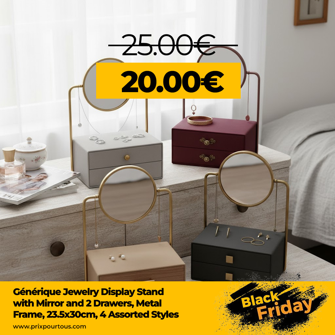 ELEGANT DESIGN: Jewelry display organizer with circular mirror and metal frame construction in vintage-inspired style STORAGE SOLUTION: Features two convenient drawers at the base for storing smaller accessories and jewelry items DIMENSIONS: Measures 23.5 x 30 centimeters, perfect size for dresser tops or vanity tables VERSATILE DISPLAY: Combines practical storage with an attractive mirror for […]