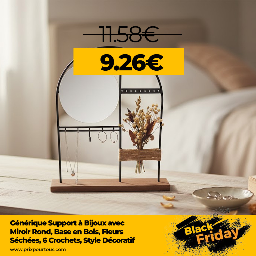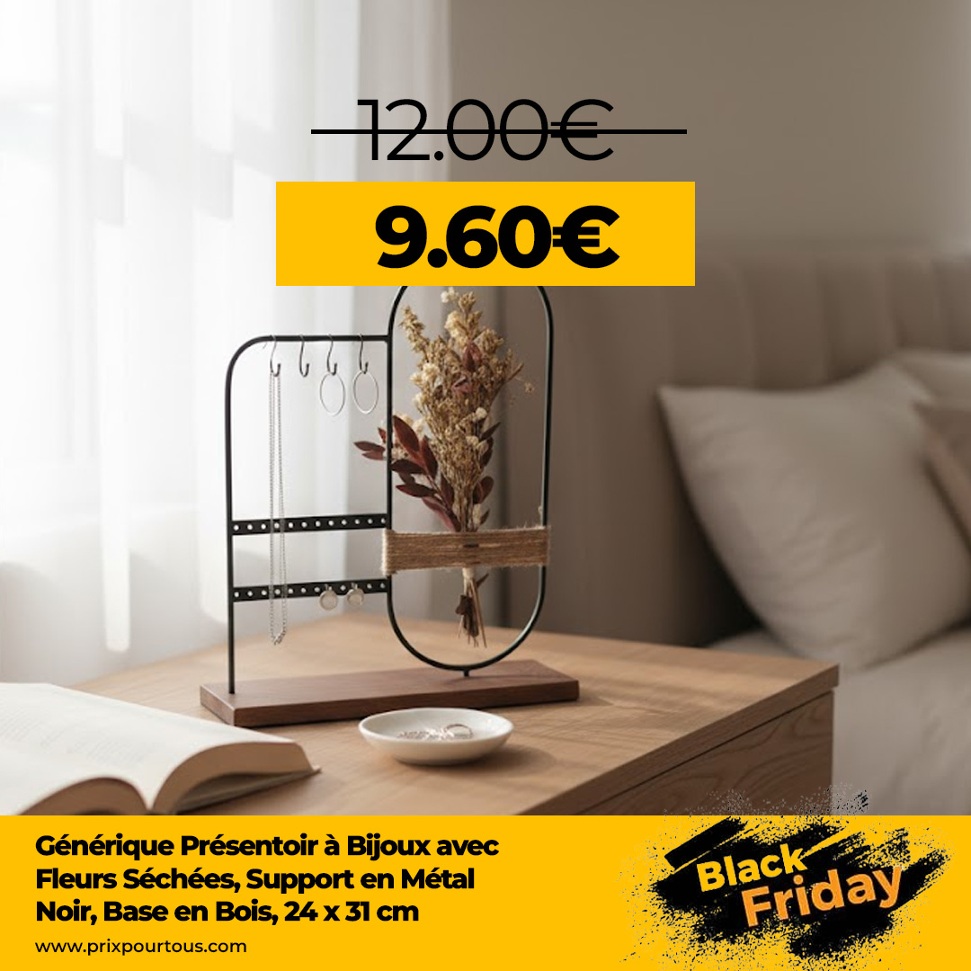 DESIGN ÉLÉGANT: Présentoir à bijoux en métal noir avec base en bois et un espace décoratif pour fleurs séchées DIMENSIONS PRATIQUES: Mesure 24 cm de largeur sur 31 cm de hauteur, idéal pour un usage sur coiffeuse ou commode MULTIFONCTIONNEL: Combine un porte-bijoux avec crochets et un support décoratif pour fleurs séchées naturelles ORGANISATION: Deux […]